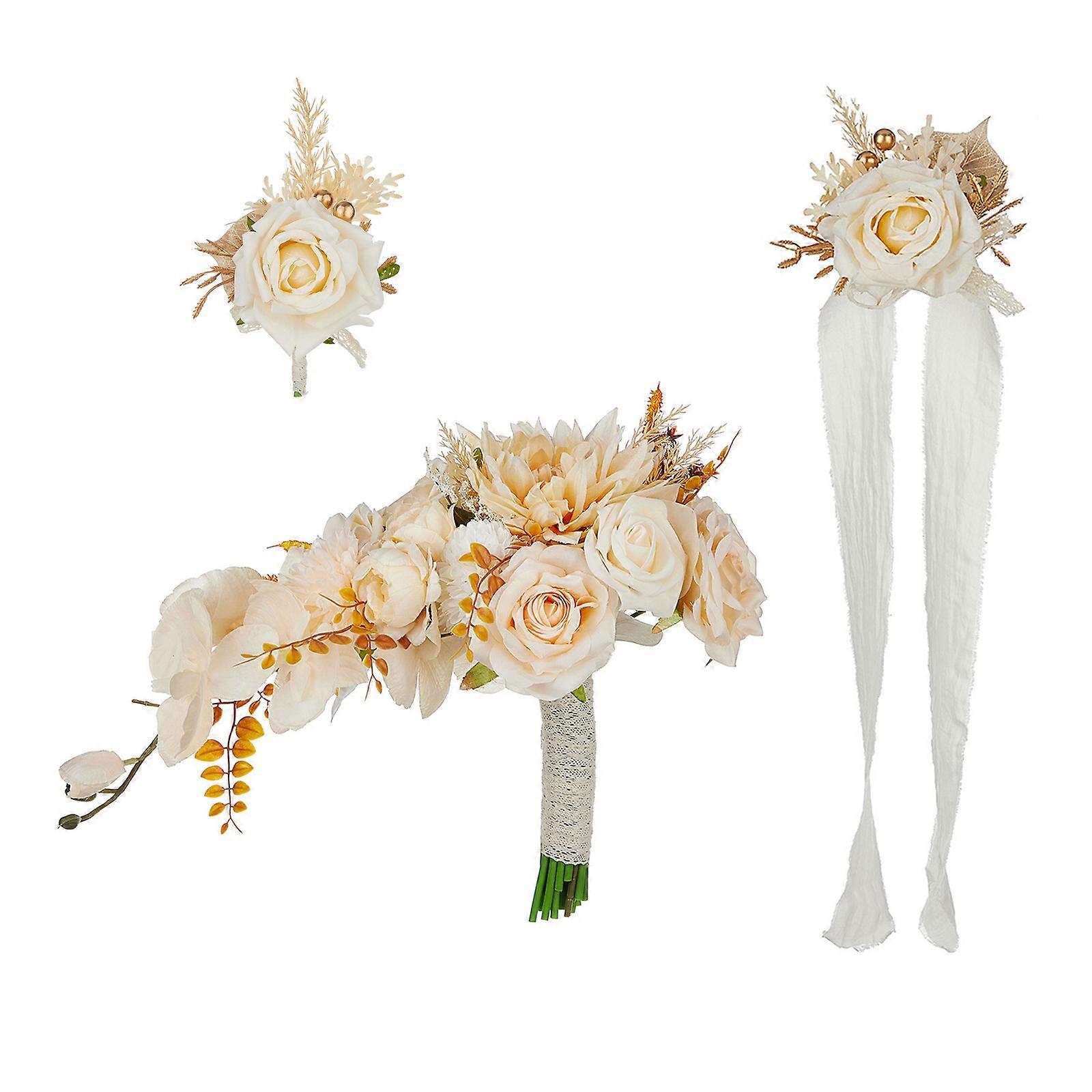 Stylish Faux Silk Bridal Bouquets with Wrist Flower Fashion Accessory Portable for Romance Wedding Supplies Celebration