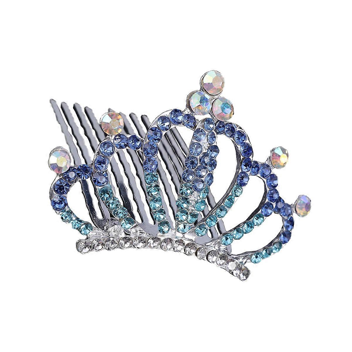 Crystal Hair Crown Comb Attractive Tiara Headdress Hair Accessory for kids Children Girls (Blue)