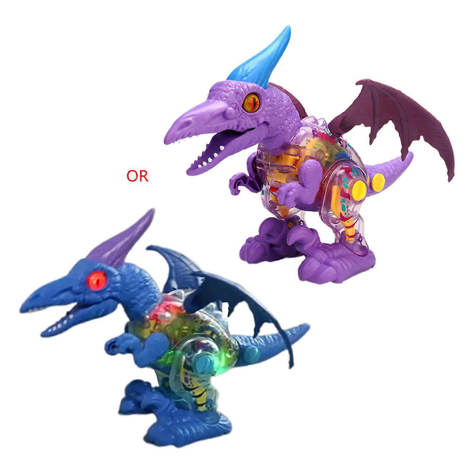 Interesting Electric Light Up Gear Pterosaur-shape Toy with Mechanical Gear Car Transparent Model Racing Toy Car