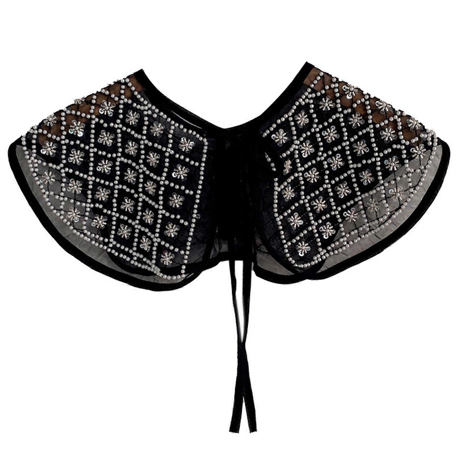 Sweet Girls Mini Bead Floral Pattern Trim Decorative Collar Fabric Sewing Applique DIY Neckline with Adjustable Rope Black