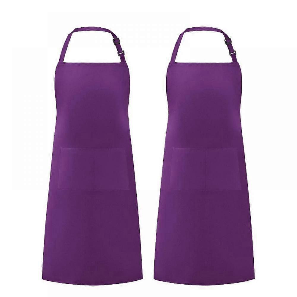 2-Piece Adjustable Bib Apron With 2 Pockets, Kitchen Apron For Men And Women Chefs, Kitchen Specific Apron - Purple