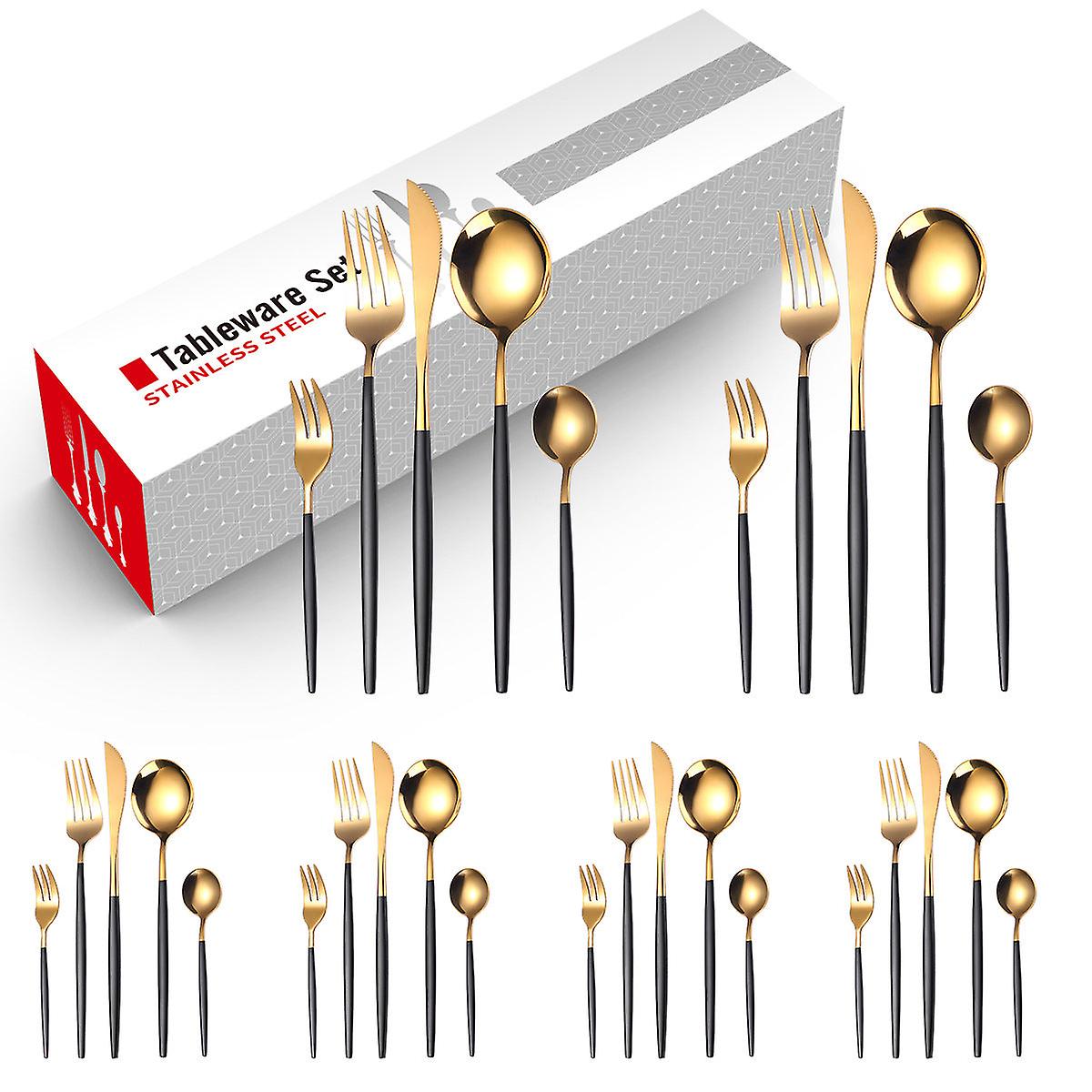 Stainless Steel Knife And Forks Four-piece Spray Paint Portuguese Tableware 30 Pieces Golden Set Creative Western Food
