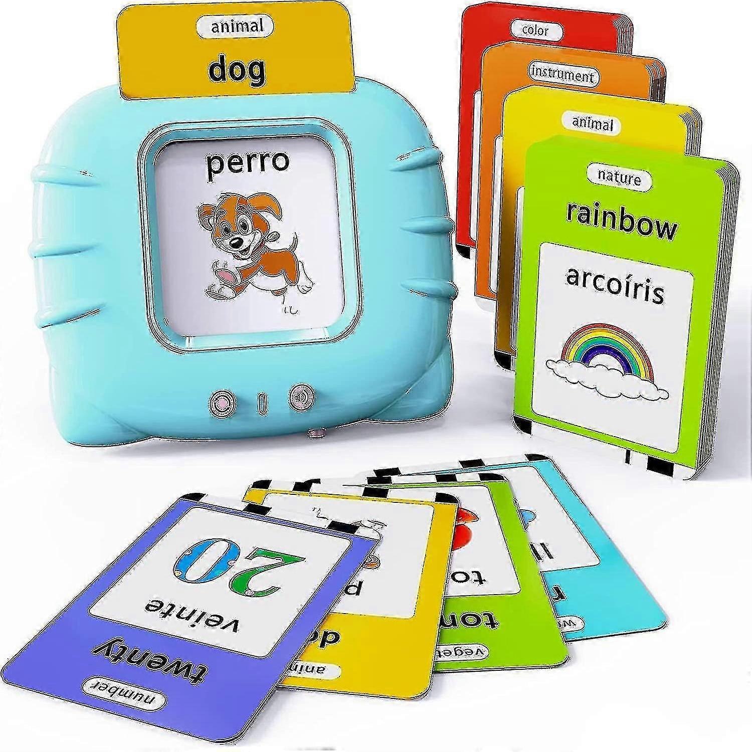 Spanish And English Bilingual Ble Flash Cards Toy With Music, Learn Spanish And English For Kids, Nias, Nios, Bebes Cyan