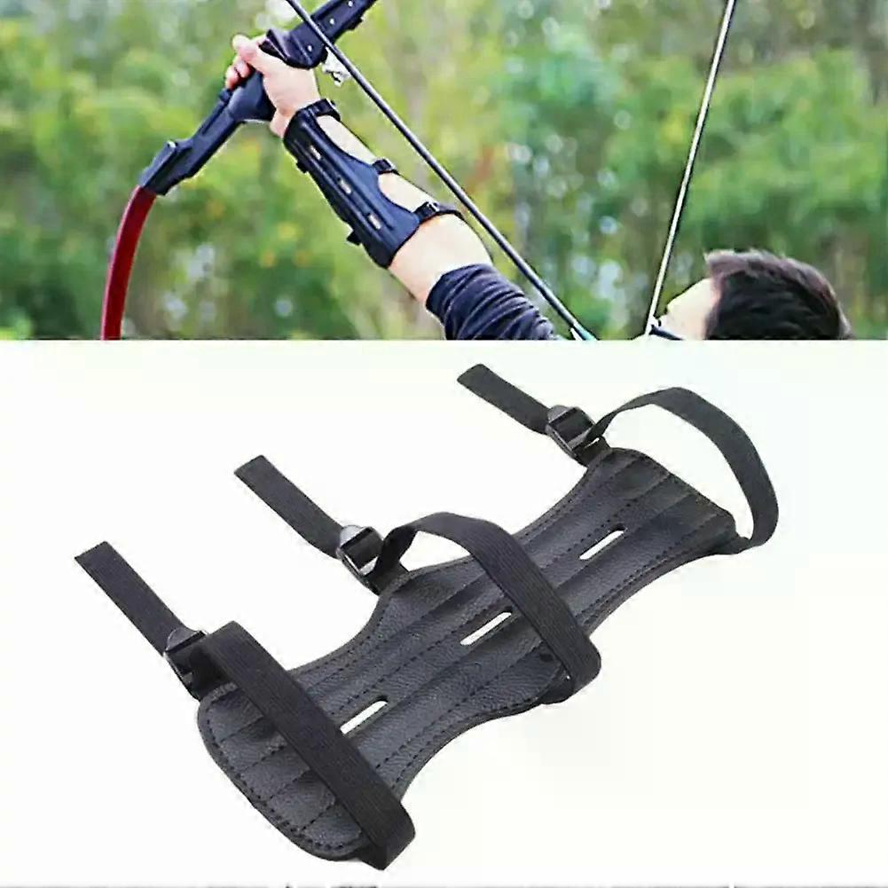 Leather Archery Arm Protector Guard For Men Cowhide Bow Shooting Arm Armband 3 Straps Shoot Black Arm Guard Hunting Y5U1