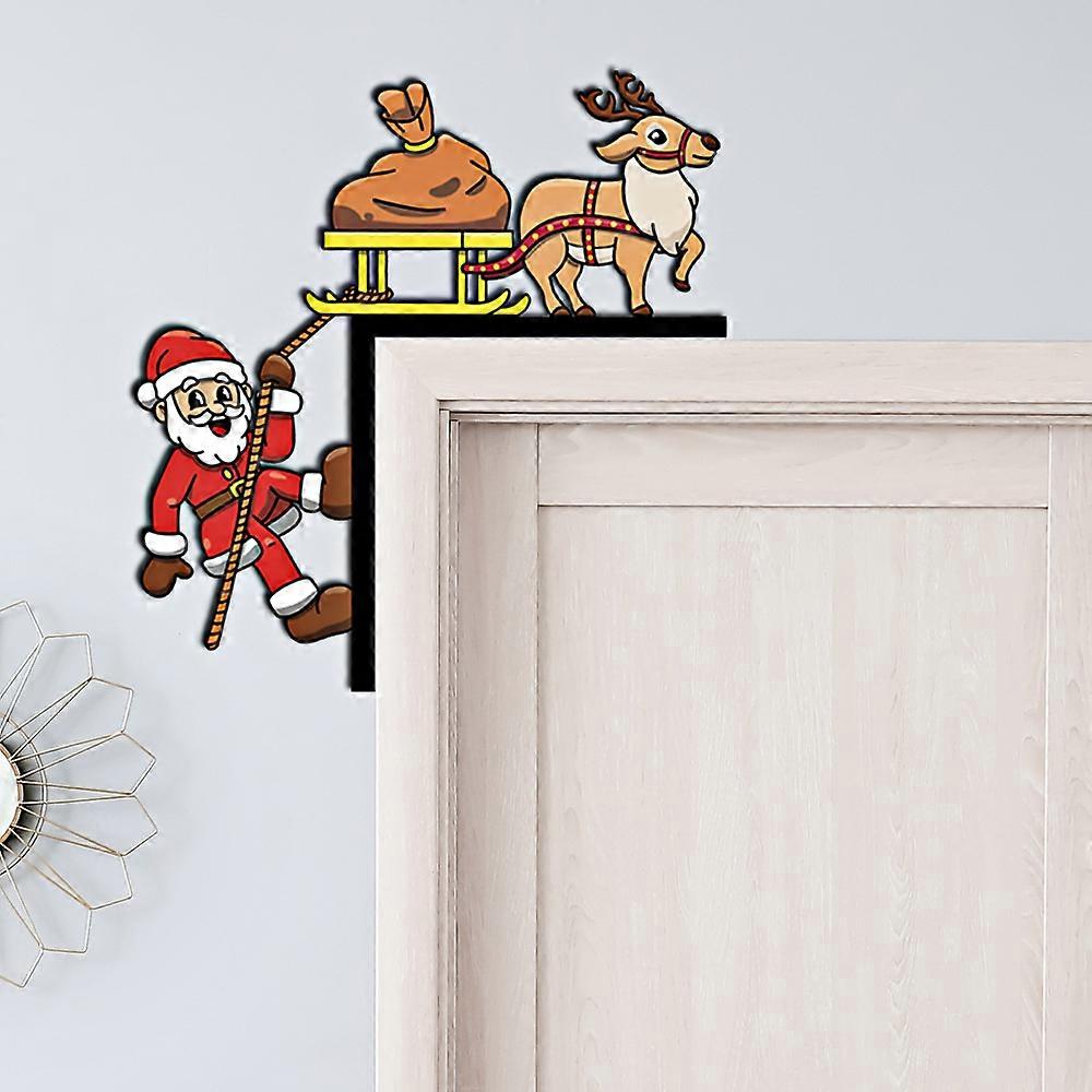 Christmas Wooden Door Corner Decor,Xmas Santa Elf Grinch Top Door Frame Door Topper
