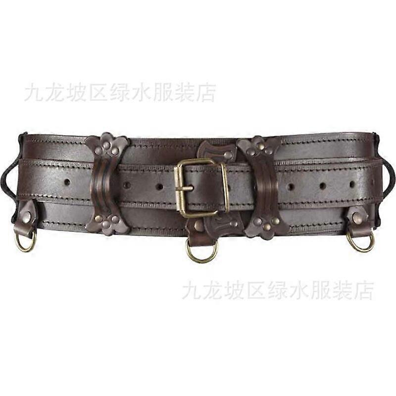 Medieval Festival Girdle Wide Leather Belt Steampunk Gothic Waist Protector Larp Celtic Knight Cosplay Waistband For Men Women 1. Suitable waist size: 80-105cm. 2. Use environmentally friendly PU leather, strong and durable. 3. Suitable for playing lively (real-life role-playing), role-playing, Halloween, fancy dress, drama props and historical reenactment. 4. Suitable Group: Can match with any retro clothing, suitable for men and women, adjustable. _x000D_