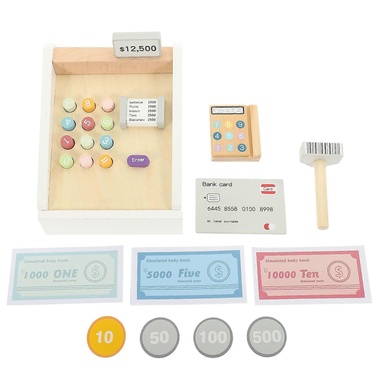 Children Cash Register Toy Wooden Cash Register for Pretend Play 3Sets