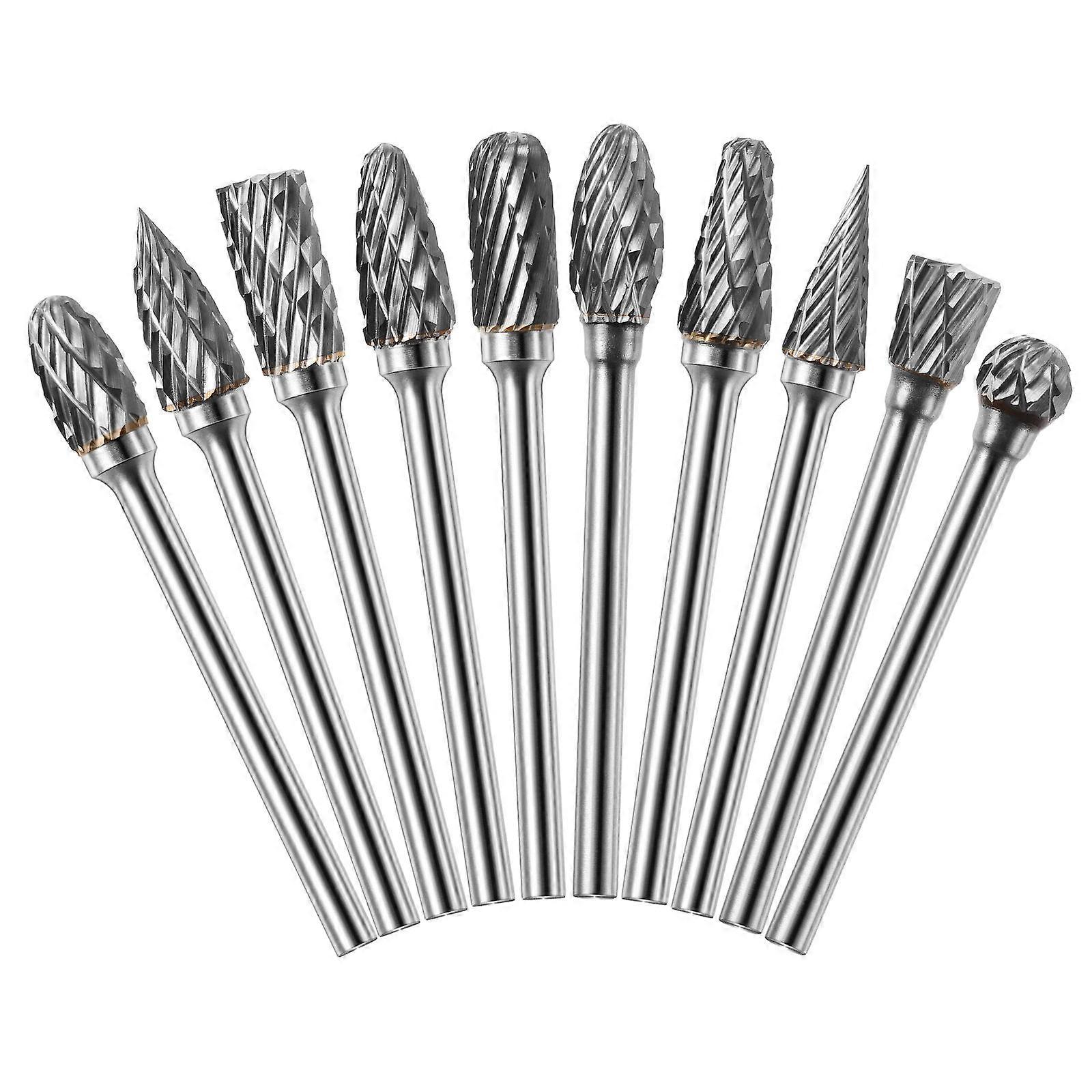 This set of rotary burs, made of premium tungsten steel carbide, is solid and practical for lasting use. Come with different shapes of burs used for , chamfering, hollowing, grooving, reaming etc. Great for DIY , jewelry making, home repair and more. They will be the for you. Features - Brand: VORCOOL. - ColorSilver - Material: Tungsten Steel YG8. - Size: About 10.00X6.40X1.10cm/3.93X2.52X0.43inch. - Burr Diameter: Approx. 6mm. - Shank : Approx. 3 mm. - Length: Approx. 40mm. - Assorted shapes include ball, , rounded cylinder, inverted etc. - Great for filing glass, ceramics, tile, brick, plastics, wood, fiberglass, stone, gold, , , metals, and anything with a hard surface. - Suitable for polishing metals and plastics. Can be used with most hand power . - Constructed with tungsten steel carbide and fine workmanship, they are practical, strong and durable. - Great for DIY polishing, , engraving etc. Highly recommended for jewelers, lapidary use, hobbies, crafts, craft modeling, home repair and so much more. Package list: 10 x VORCOOL Rotary Burrs
