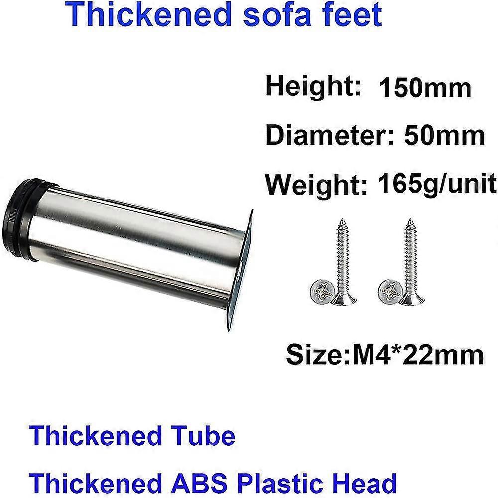 Furniture Leg 4x Furniture Legs. Adjustable Foot Furniture Legs - Chrome Metal - Adjustable Height (total: 150-165mm)