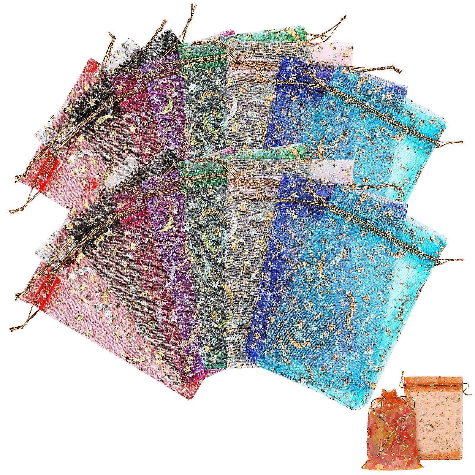 Star Moon Organza Drawstring Bags 100 Pcs Sheer Mesh Party Favor Bags for Candies, Weddings, Birthdays & Special Occasions