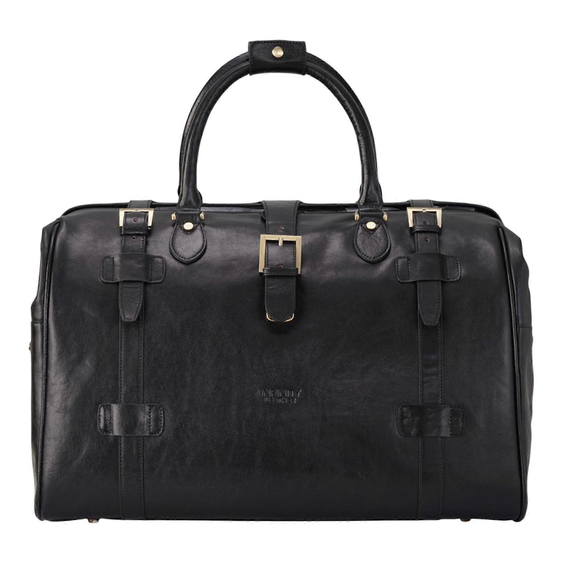 Genuine Leather Black Duffle Holdall Vintage Travel Weekend Overnight Gym Bag