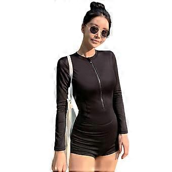 Women Piece Swimsuit with Long Sleeve Front Zippered Rash Guard Bathing Suit Quick Drying Surfing Swimsuit Color XL