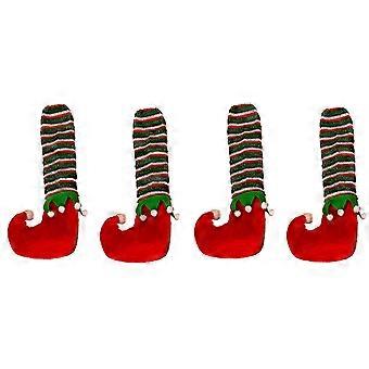 Striped Furniture Foot Cover Holiday Decorations Washable Protectors for Wood Tile Floor Red