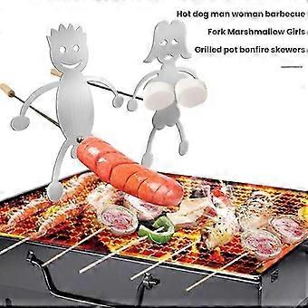 Stainless Steel BBQ Skewers with Wood Handle for Marshmallow Roasting & Meat Hot Dog Forks