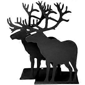 1 Pair Delicate Elk Design Book Stand Bookend Iron Book Stand for Book Use (Black)