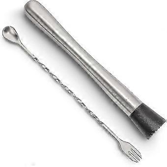 10 Inch Stainless Steel Cocktail Muddler And Mixing Spoon Home Bar Tool Set - Create Delicious Mojitos And Other Fruit Based Drinks