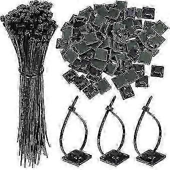 100-Piece Cable Ties Set with Adhesive Bases & Clips for Wire Organization, Cord Management Kit