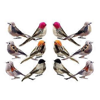 12Pcs Simulation Bird Realistic Vivid Appearance 6 Different Colors Spring Artificial Sparrow Feather Bird with Fixing Clip Home Decor