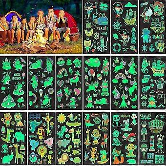15 Sheets Glow In The Dark Temporary Tattoos, Fluorescent Glow In The Dark Temporary Tattoos