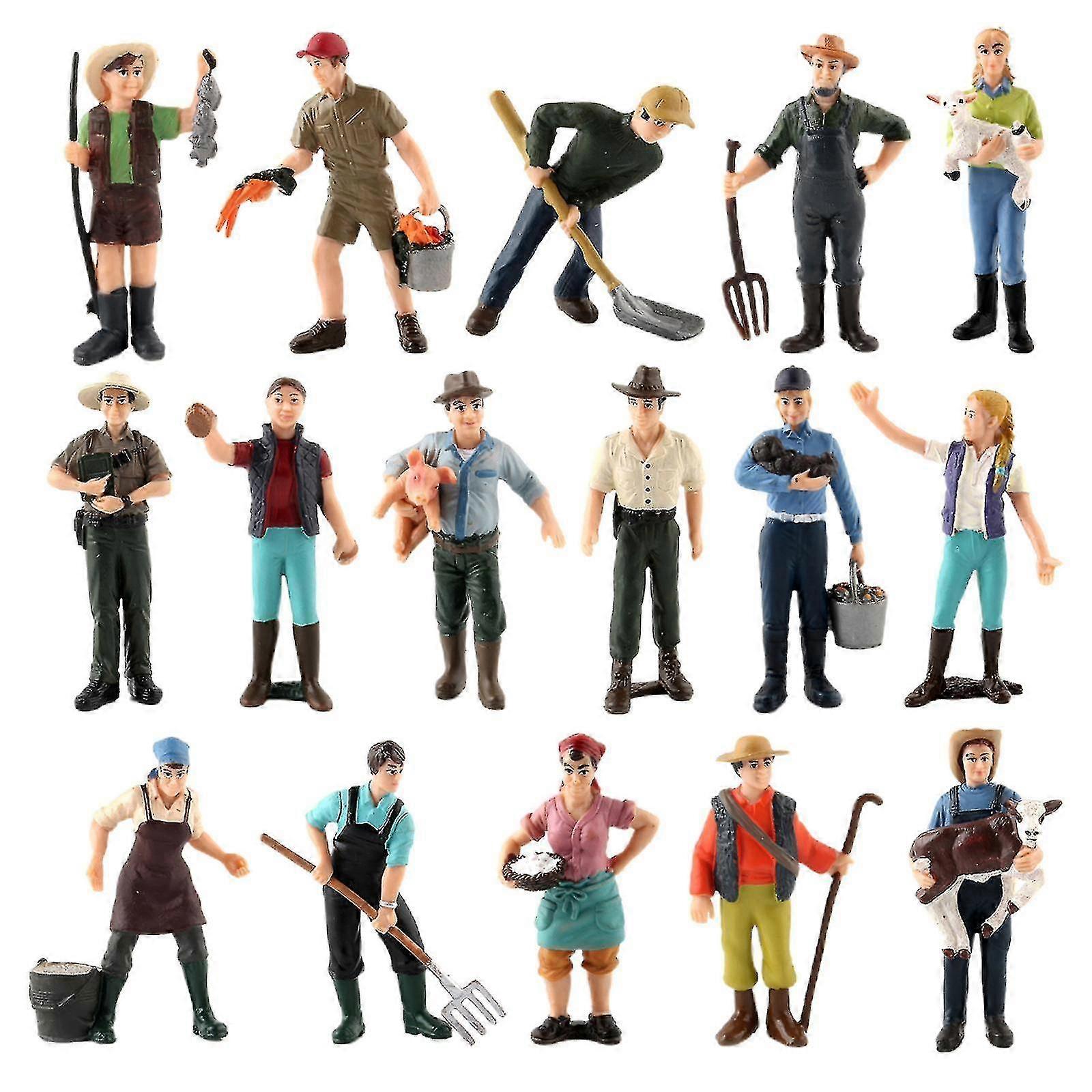 16x Realistic Pvc People Figurines Farmer With Animal Model Kids Educational