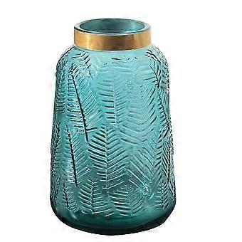 1pc Glass Vase with Leaf Texture for Flower Arrangements and Home Decor