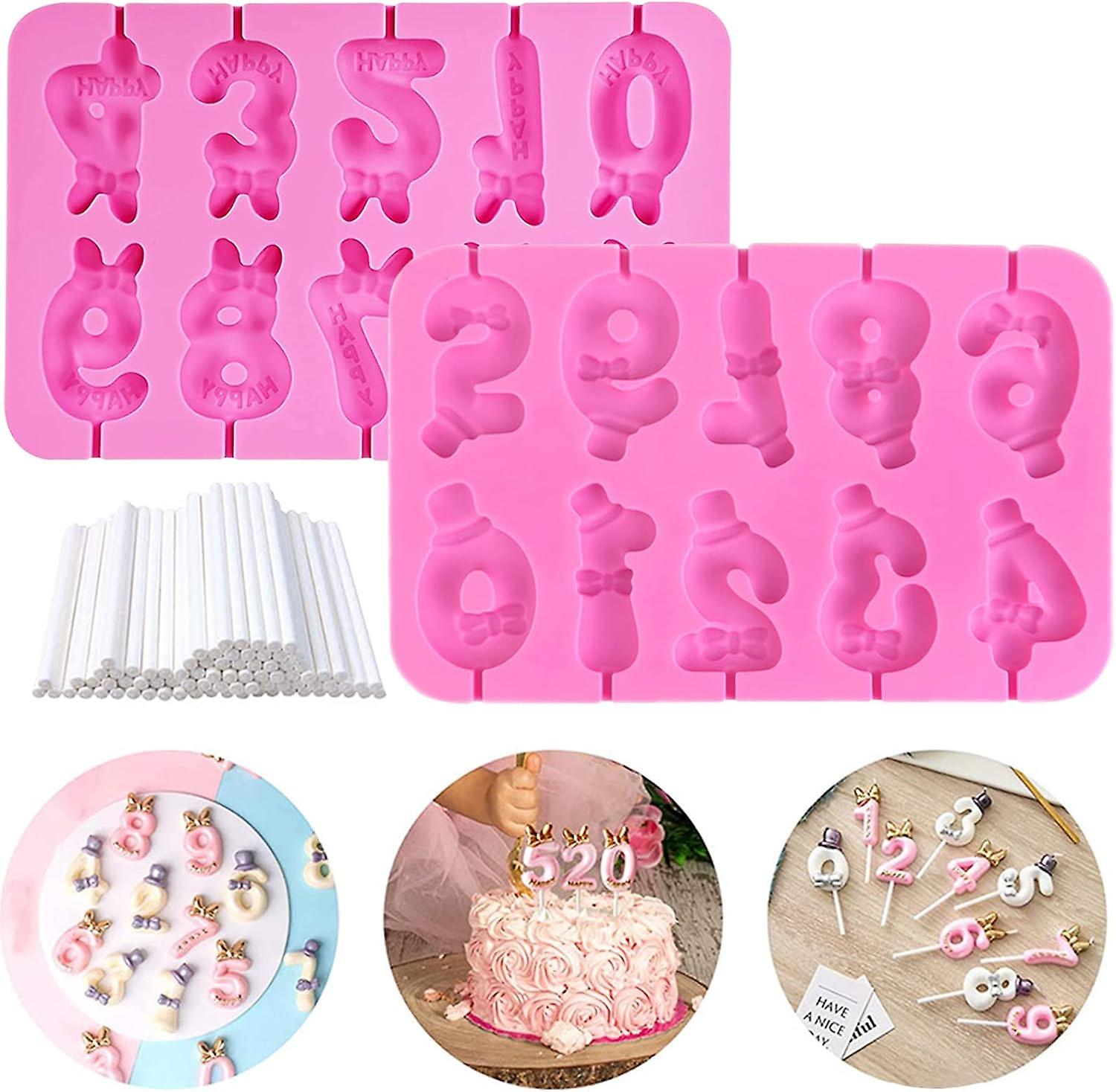 2 Pack Silicone Lollipop Molds Silicon Number Chocolate DIY Candy Birthday Cake Decoration Silicone Lolly Pop Tray Suckers Molds Gummy Sucker Cake wit