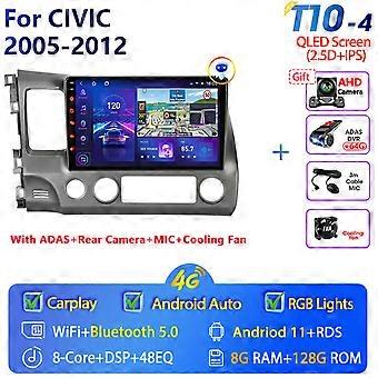 2 Din Android 11 Car Radio For Honda Civic 2005 2006 2007-2012 Multimedia Video Player Navigation GPS Split Screen Carplay RDS