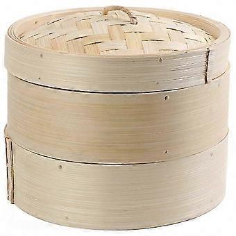 2-Tier 8" Bamboo Steamer Basket for Dim Sum, Rice, Pasta & Vegetables with Lid
