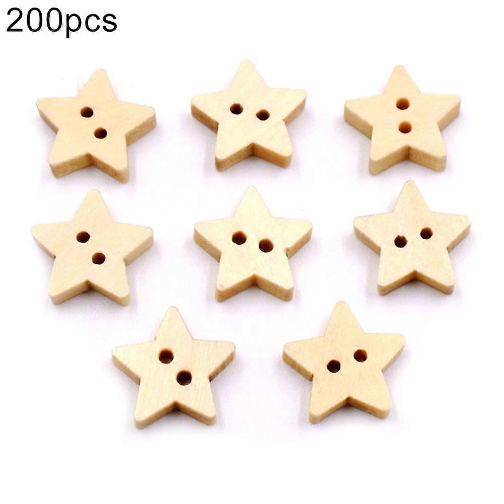 200Pcs Star Shape 2 Holes Wooden Buttons Painting Sewing Scrapbooking Decoration mengxi