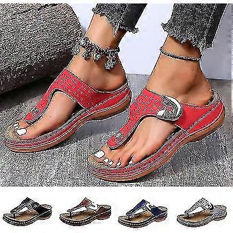 20223 Summer New Women's Metal Decor Feature Pattern Wedge Flip-flops, Flip Flop Wedge Sandals For Women, Platform Leather Thongs Flip Flop, Arch Supp