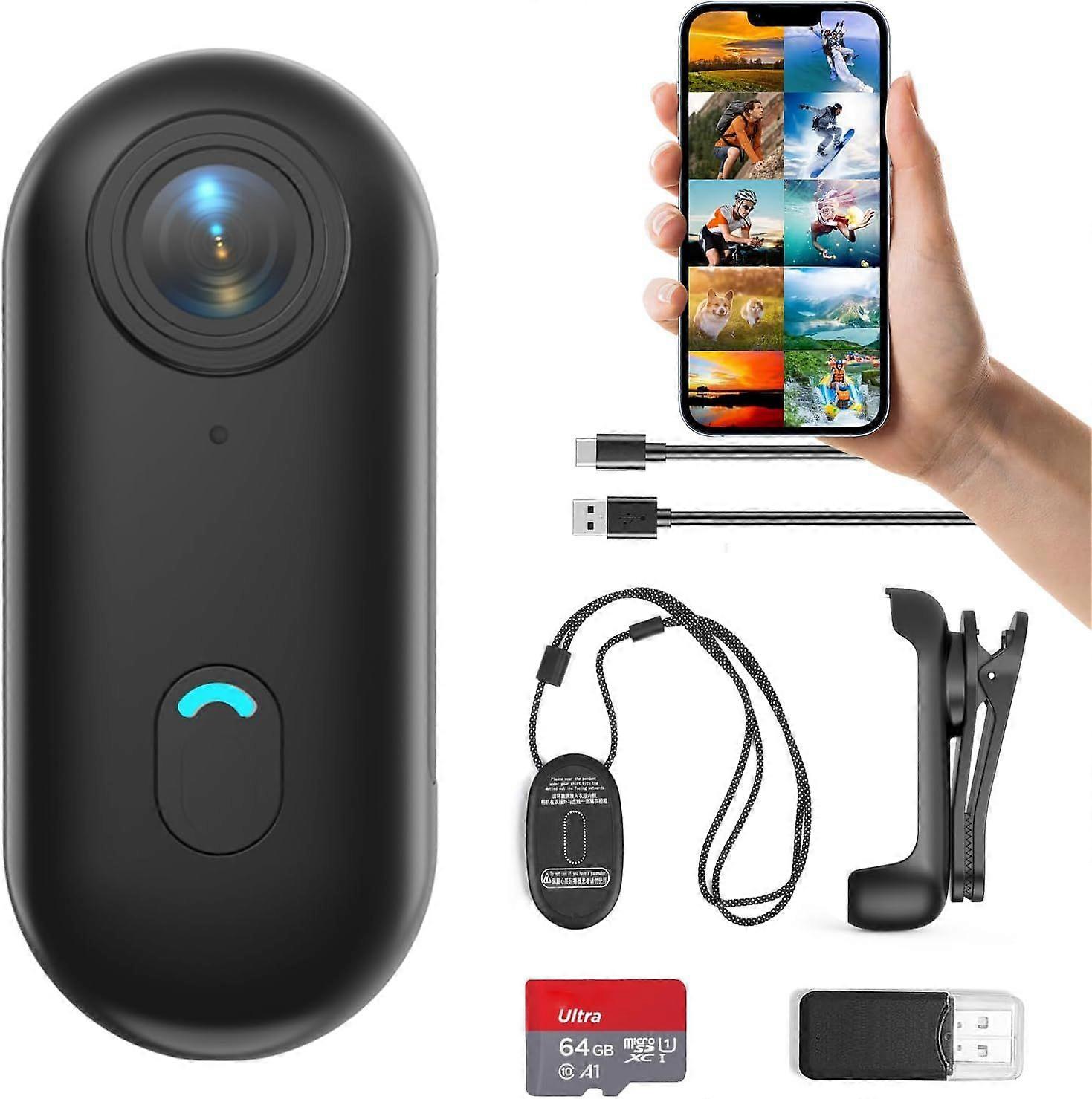 Lightweight & WiFi ConnectedThe wearable camera is only 0.8 pounds, with hands-free video recording, suitable for outdoor activities such as bicycles and motorcycles. Body camera with APP, connect to the camera's WiFi through your phone, you can view, transfer and share videos on your phone at any timeUniversal Compatibility: The mini video blog camera can help you take care of your baby, pets, elderly parents, roommates, nanny. Bodycam can be used in office, living room, outdoor, etc.Mini action camera with 800mAh racket, which can record continuously for 150 minutes. The mini body camera also supports recording while charging (built-in AT, not sold separately)Free your hands: The small action camera is attached to the magnetic lanyard and hung around your neck. The chest camera with 360 adjustable rotation back clip can be clipped on clothes. Free your hands to complete the video recordingTwo recording modes: APP recording: After connecting the thumb camera, start recording in the app. Direct recording without APP: Turn on the product, the blue light is always on, then press the recording button once, the blue light flashes slowly to start recording.