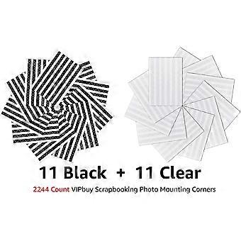 2244 Count Photo Mounting Corner Stickers Self Adhesive for Scrapbooking Photo Album Diary DIY Craft, 22 Sheets (Black & Clear)