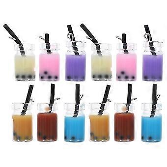 24Pcs Resin Desktop Adornment Simulation Milk Tea Cup Keychain Pendant