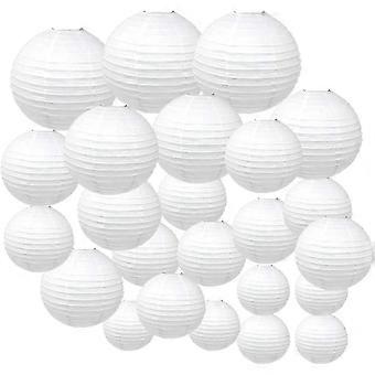 24pcs White Chinese Paper Lanterns Assorted Sizes Round Decorative