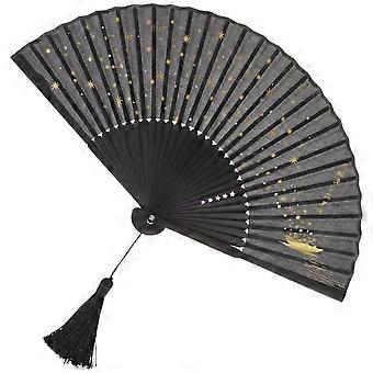 2Pcs Bamboo Handheld Fan for Stage Performance Black Folding Fan