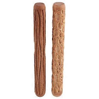2Pcs Clay Modeling Pattern Rollers, Cobblestone Wood Grain Pattern Clay Rolling Pin Textured Hand Roller Pottery Tools