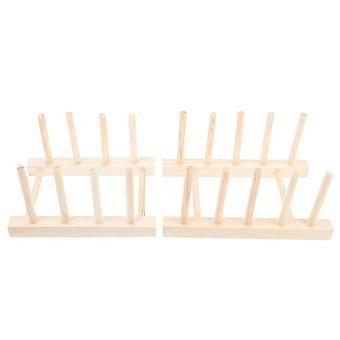 2pcs Saucer Storage Holder Multi Functional Dish Drying Rack for Kitchen Home Use Easy to Clean Wooden Plate Display Shelf for Organizing Dishes and