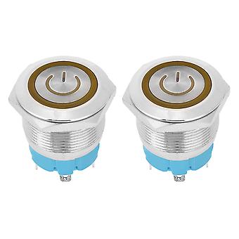2PCS Yellow 22mm Flat Head 4-Pin Push Button Switch - 3-6VDC, with Power Light Indicator