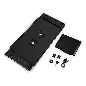 360° Adjustable Foldable Laptop Desk Table Stand Holder w/ Cooling Dual Fan Mouse Boad Black
