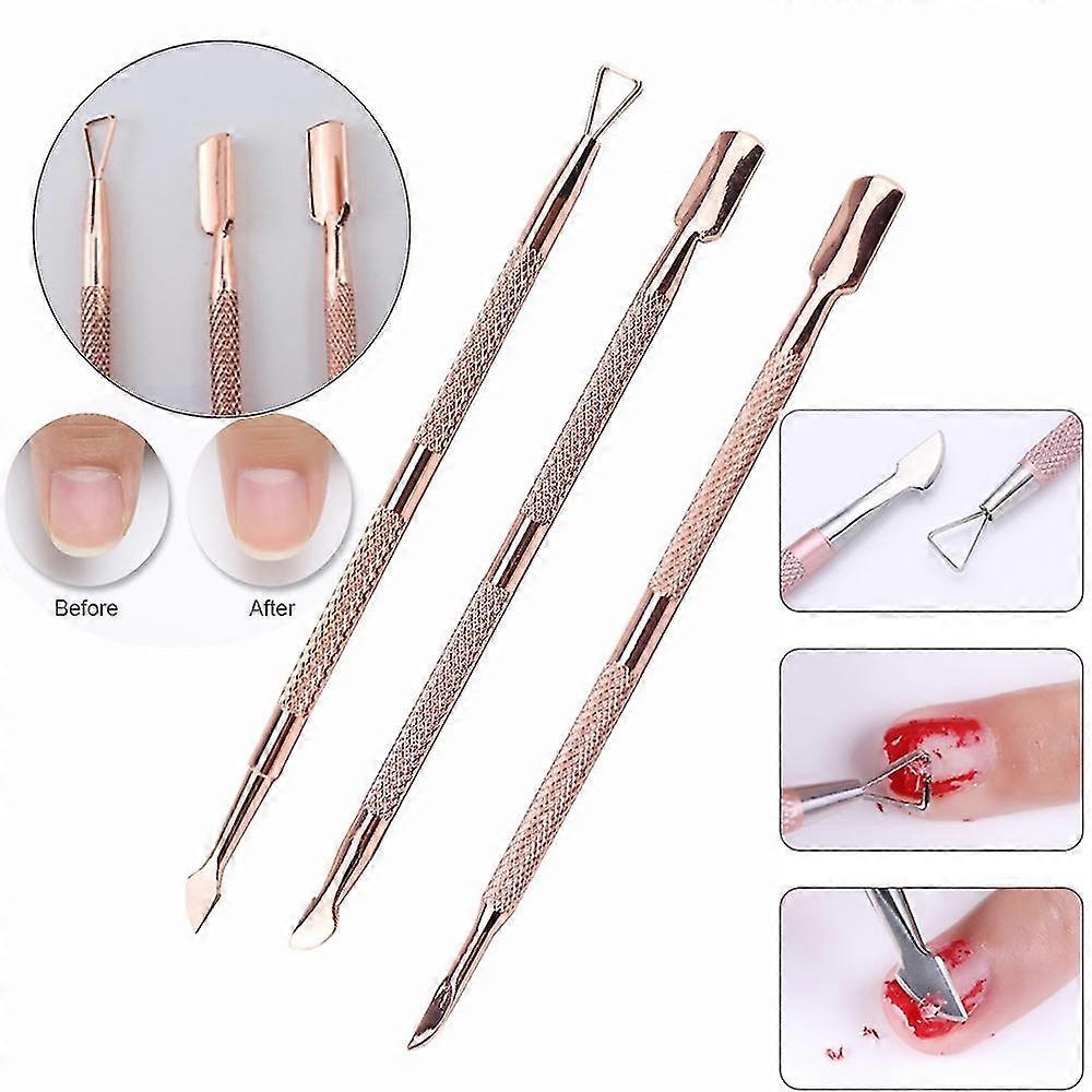 3pcs Stainless Steel Cuticle Remover Dual-ended Finger Dead Skin Push Nail Cuticle Pusher Manicure Nail Care Tool