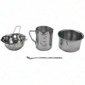 4-Piece Stainless Steel Double Boiler Wax Melting Pot Set with Long Handle, Pitcher & Mixing Spoon for Candle and Soap Making