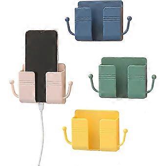 4 Pieces Wall-Mounted Mobile Phone Holder with Hook, Remote Control Organizer Made of ABS Material