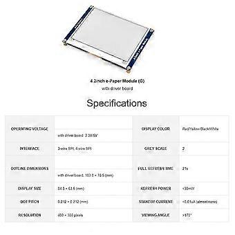 4.2inch E-Paper E-Ink Display Module 4.2inch E-Paper Module (G) , 400x300, Red / Yellow/ Black / Whi