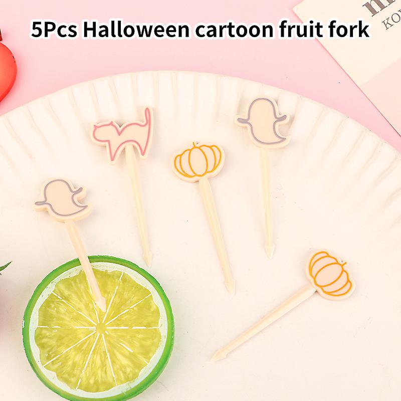 5Pcs/Set Halloween Cocktail Picks Fruit Fork Creative Childrens Holiday Fruit Fork Set Cake Stick Desserts Forks