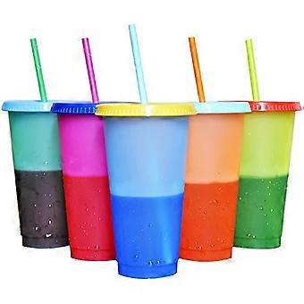 5 colors of plastic cup Variable color cup 24 oz Reusable plastic cup Color changing cup Plastic cup with cover and straw Color changing stadium cup