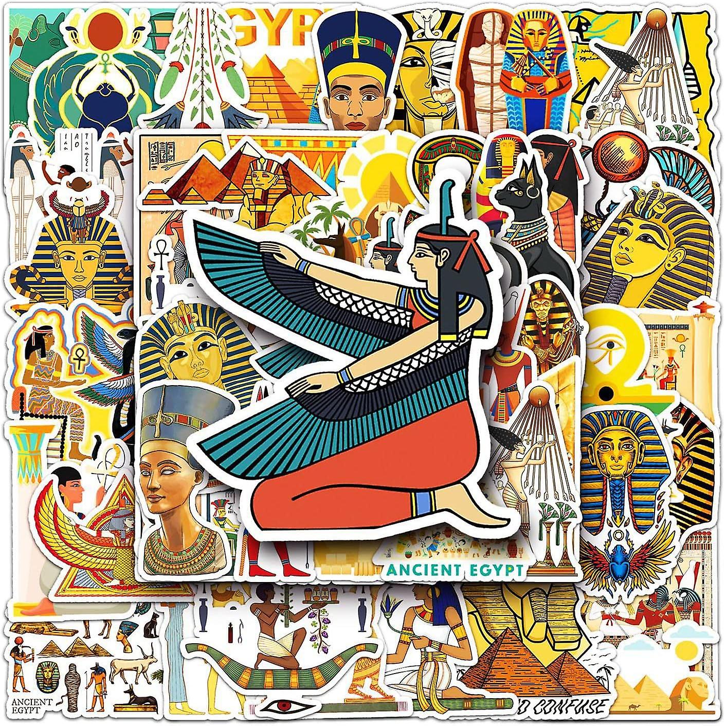 50pcs of Egyptian Pharaoh Vinyl PVC Waterproof Cute Fun Cartoon Doodle Stickers, Funny Trendy Decals for Teens, Kids, Adults, Colorful Anime Sticker P