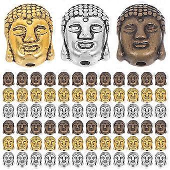 60pcs Buddha Head Spacer Beads Double Sided Alloy Findings Large Hole Beads for Jewelry Making, Keychains & DIY Projects