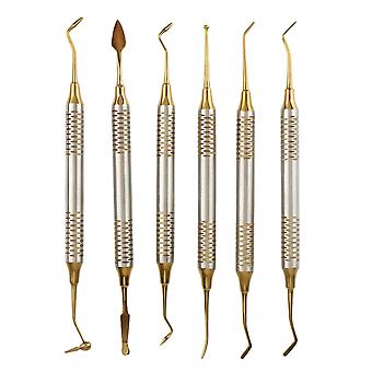 6Pcs Dental Instrument Composite Resin Filling Spatula Titanium-Plated Head Filling