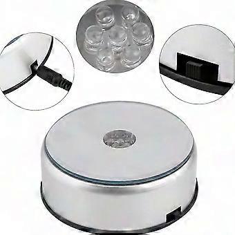 7 Crystal Glass Art LED Display Stand - 7 Color Rotating Jewelry Holder with 90 Rotation