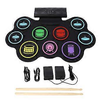 9 Pads Electronic Set Educational Rechargeable Built in Speaker Headphone Bluetooth USB MIDI Roll Up Portable Drum Pad Kit for Kids